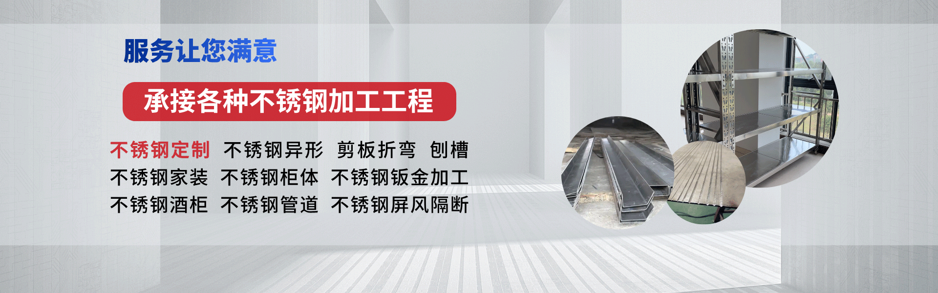 主營不銹鋼加工定制,包括不銹鋼壁龕柜、不銹鋼屏風、不銹鋼酒柜、不銹鋼電視柜 不銹鋼字體、不銹鋼發光字、不銹鋼貨架、不銹鋼管道等不銹鋼金屬金屬加工定制。承接各種不銹鋼加工工程,KTV裝飾,小區裝飾等,集開發、設計、生產、銷售、工程安裝為一體...